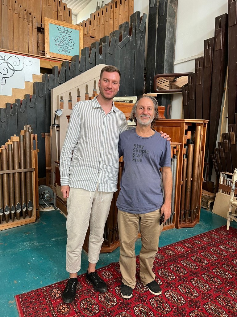 Am 12. November 2022 besuchte der polnische Organist Jakub Stefek unsere Werkstatt. Er lebt und arbeitet in Stettin, wo mein Ururgrossvater Oberkantor in der Synagoge war. Er spielt auch in Berlin und interessiert sich sehr fuer juedische Orgelmusik.