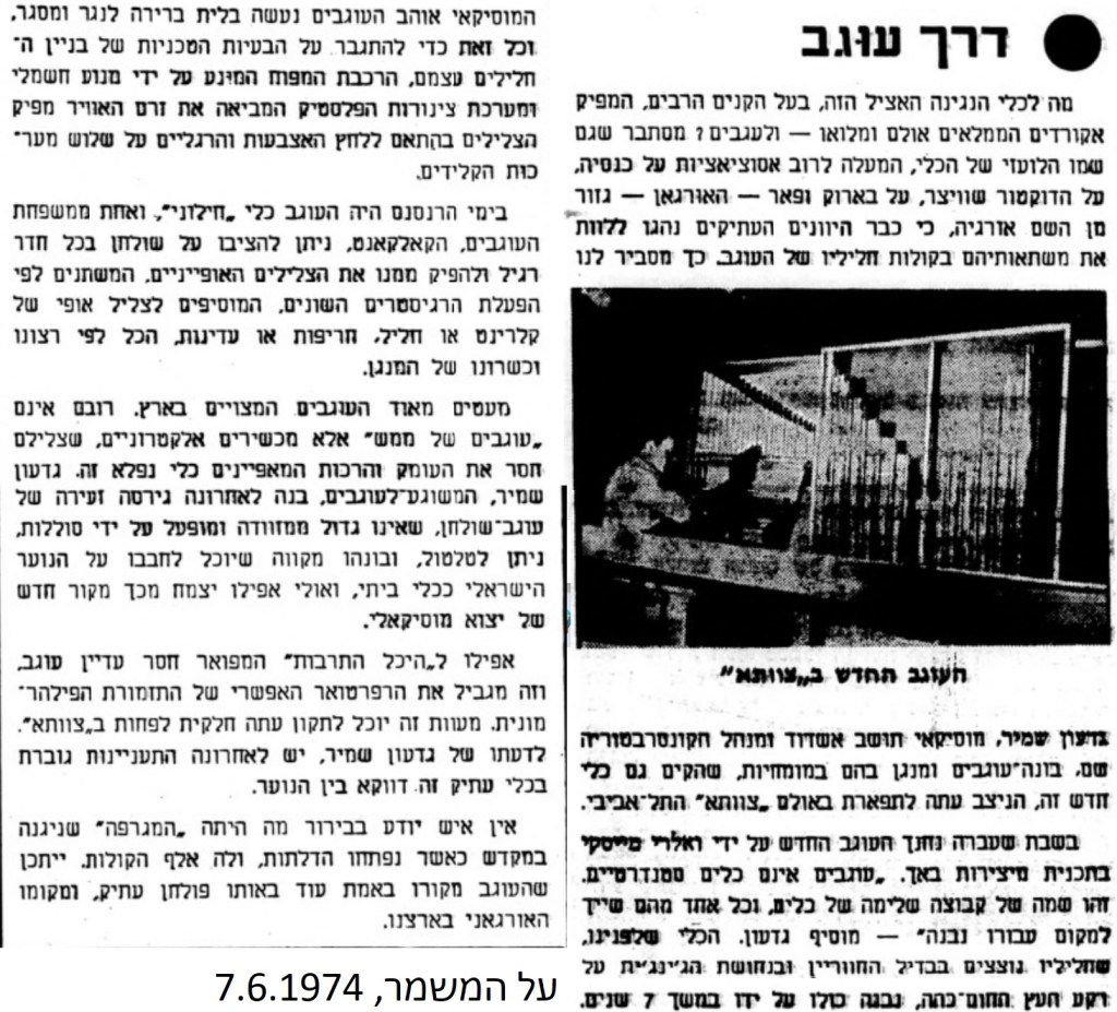 בתחילת שנות התשעים נוצר שיתוף פעולה בין גדעון שמיר לראובן הכט. הדגם הראשון של העוגב הזה נראה כך: