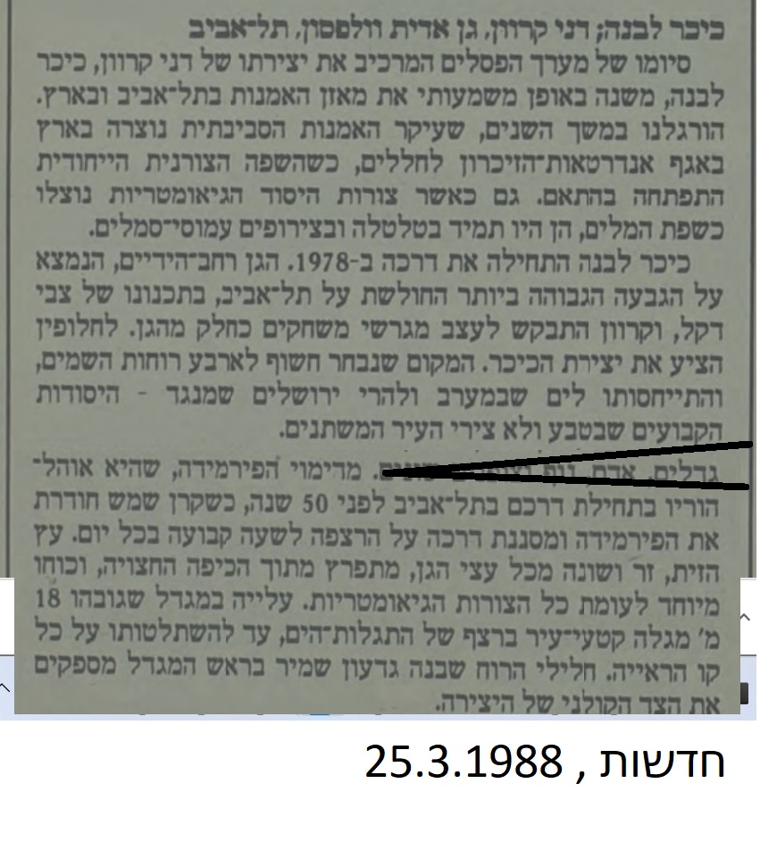 שיתוף פעולה עם דני קרוון הוליד את "כיכר לבנה" בפארק אדית וולפזון בתל-אביב.