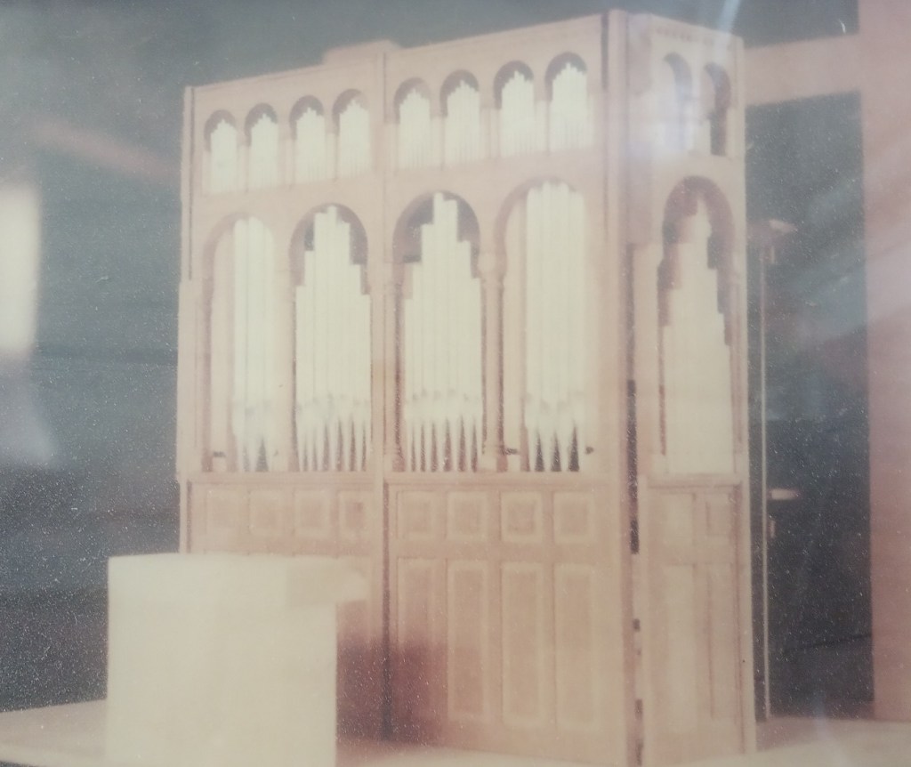 בקדמת התמונה אפשר לראות את העוגב הקטן הבארוקי שעומד עד היום בסדנה ביובלים ומשמש לאירועים במסגרת מרכז המבקרים. הנה אותו עוגב בהיכל התרבות בתל-אביב: