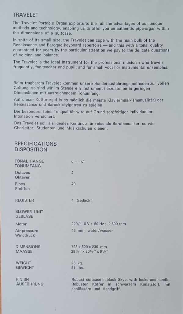 שני הכלים במצב טוב. רגיסטר אחד, מופעל באמצעות מפוח חשמלי קטן מובנה.